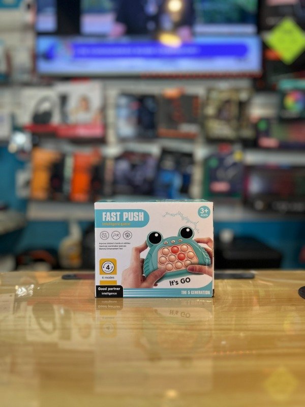 El Fast Push es el jueguito ideal para que los chicos se diviertan mientras entrenan memoria y reflejos. Con su diseño en forma de ranita y botones tipo “pop it”, ofrece 4 modos de juego que los mantienen entretenidos por horas. Es práctico, resistente y perfecto para regalar.