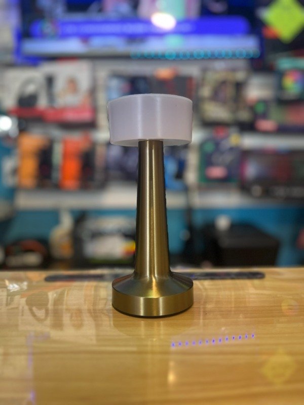 Dale un toque elegante a cualquier espacio con esta lámpara LED recargable, ideal para escritorio, living o mesita de noche. Su diseño moderno en tono dorado y luz suave crea un ambiente cálido y relajado.